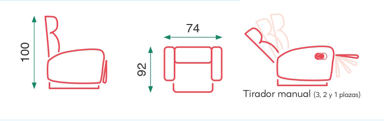 Medidas del sillónAncho: 74 cm / Fondo: 92 cm / Altura: 100 cm